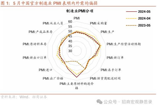 但5月中国官方制造业PMI录得49.5(前值50.4),新订单分项下滑至49.6(前值51.1),新出口订单分项下滑至48.3(前值50.6),降幅尤为明显。5月份制造业PMI环比超预期下滑0.9至49.5。分项来看,新订单指数下滑至49.6(前值51.1),新出口订单指数下滑至48.3(前值50.6),降幅尤为明显。此外,5月美国ISM制造业PMI也进一步下滑至48.7。由于PMI指标存在较大的主观性,进而,全球制造业PMI跳升、中美大幅回落的反差或与5月美国对华落地关税导致中美企业的贸易预期转弱有关。换言之,上述数据反映的是外需的强现实与弱预期。